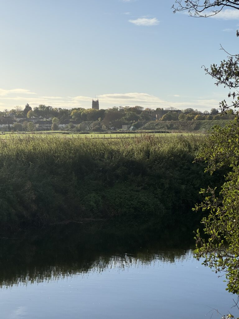 Suitably refreshed, we set off to continue along the river, crossing over Siston Brook at the point where it enters the river and continuing with views across to the Chocolate Quarter and Keynsham Church across the water.