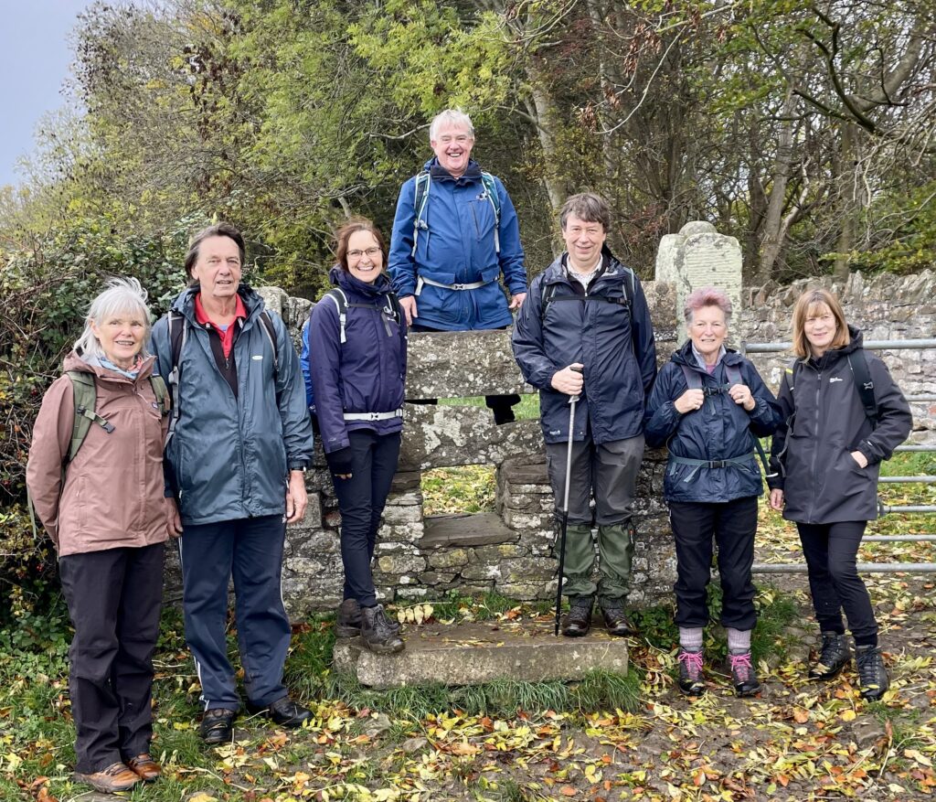 We followed the river round to Hanham Lock, passing several residential wide and narrow boats on permanent moorings, and then headed up the hill alongside the garden wall of Hanham Court. Sweeping round Hanham Lodge, we were able to see the church and entrance to Hanham Court before heading back up the hill towards Willsbridge. The first section was alongside woodland, and it was starting to rain, so waterproofs were donned as we came out into the open. Another short uphill path led to the famous stile, which as you can see from the photo is quite spectacular.