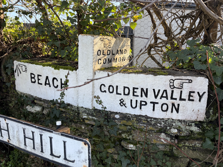 Turning right and up Cowhorn Hill we worked our way onto North Street, Oldland Common and after crossing the Avon Valley Railway took the path alongside the railway to Redcliffe School. The weather was simply glorious with no wind at all, but it was wet underfoot. Crossing over the road to North Common we headed up the fields to the top of Redfield Hill, spying one of the wonderful stone “finger posts” which are common in the district. One arm pointed to Beach which was tempting, but we were to carry on along Redfield Edge. Here we met the first challenge as through the gate into the field was the first real mud bath.